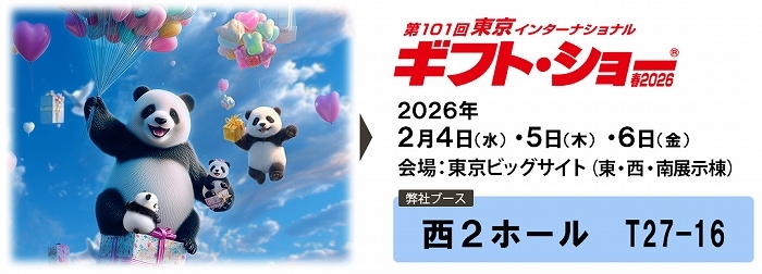 弊社は2026年2月4日(水)〜2月6日(金)まで東京ビッグサイトで開催する東京ギフトショーに出展いたします。